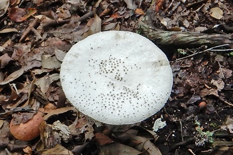 【説明】 地面に生えるキノコが真円に近い形をしていて、森へ着陸した空飛ぶ円盤のようです。