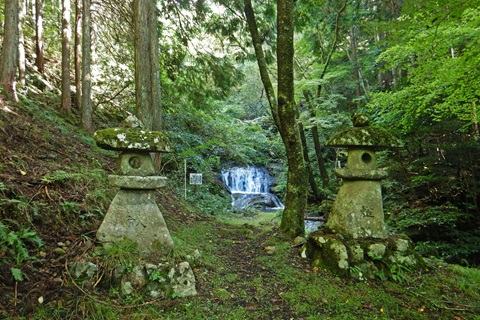 へ出かけました。 2024年にも訪ねていますが、前回に分からなかった「参道中道」を歩くのが目的です。 最初の石灯籠が並んだ所に道の入口がありました。 塩ビ被覆のロープが見られる所もあります。 宮ノ瀧不動尊へ渡る小橋の手前にある標識が立つ所まで続いていました。 戻りは通常の行者道を歩きましたが、前日の雨で岩が濡れていて滑り易く、歩くのにとても苦労しました。