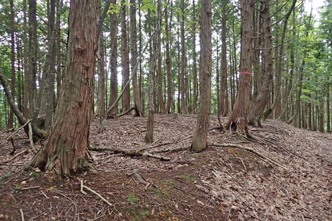 (点名:入山)へ出かけました。 県道135号の神坂バス停の傍から林道に入って空山中継局まで車で行き、そこから山頂まで歩いていきました。 山頂まで広い林道が続いていて、多少のアップダウンはあるものの、苦労することも無く山頂に立てます。 林道や山頂は樹木に囲まれていて、眺めの広がる所はありませんでした。