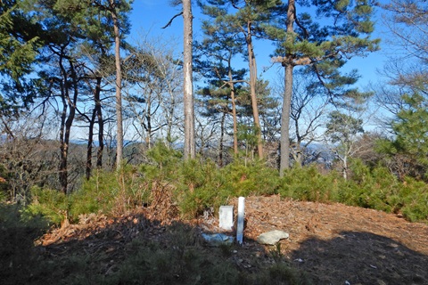 (点名:川見)へ出かけました。 豊岡市と養父市の境にある出石街道峠の南側から作業道を進み、 途中で支尾根に取り付いて市境尾根に出て山頂へ登り、北側を通る林道へ降るルートを周回しました。 尾根には明瞭な道はありませんが、「国土調査」や「兵公施界」などの境界杭が点々と続いています。 アセビなどが少し茂る所もありますが、薮漕ぎするほどではありません。