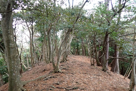 へ出かけました。 瀬戸区公民館を起終点として、城崎マリンワールドの手前から愛宕神社を経て75m峰へ登り、 尾根をしばらく進んだ所にある水利施設の脇から車道に降りて日和山隧道を抜け、 西刀神社に立ち寄ってから瀬戸区公民館に戻るルートを半周回しました。 愛宕神社から先の尾根に明瞭な道はありませんが、行く手を阻まれることはありません。 しかし、県道へ降る斜面は急坂になっています。