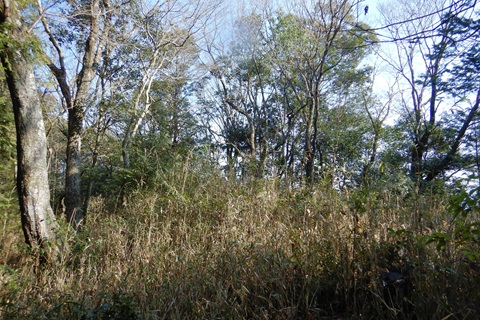(点名:母坪)へ出かけました。 母坪公民館の傍を起終点として、小島山妙見宮を経て南側から山頂へ登り、北へ延びる尾根を降るルートを周回しました。 尾根に明瞭な道はなく、プチ藪漕ぎする所もあります。 山頂付近は母坪城跡(穂壺城跡)になっていて、堀切・切岸・竪堀・平坦地などの遺構が見られます。 山頂には笹が一面に茂っていて、三角点の標石は見つけられませんでした。