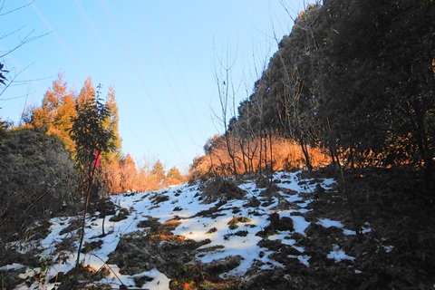 (点名:小野山)へ出かけました。 箸荷地区にある箸荷むらづくり館を起終点として、市町境尾根にある大見坂に出て、 小野山と494m峰に登ってから引き返すルートを歩きました。 大見坂までは箸荷地区と西谷地区を結ぶ峠道ですが、作業道の敷設によって一部が分断されています。 大見坂から小野山と494m峰へ続く尾根は、送電線の保守路にもなっているようで歩き易くなっています。